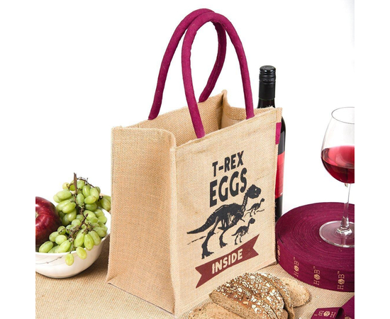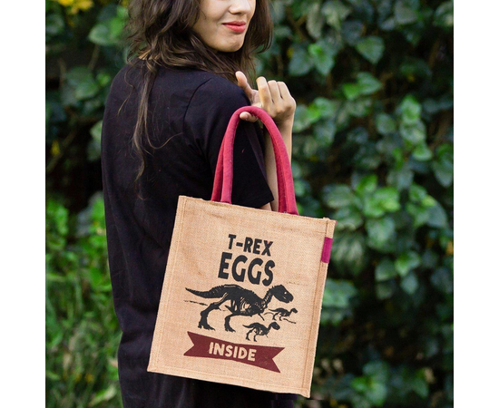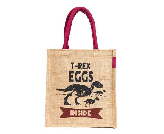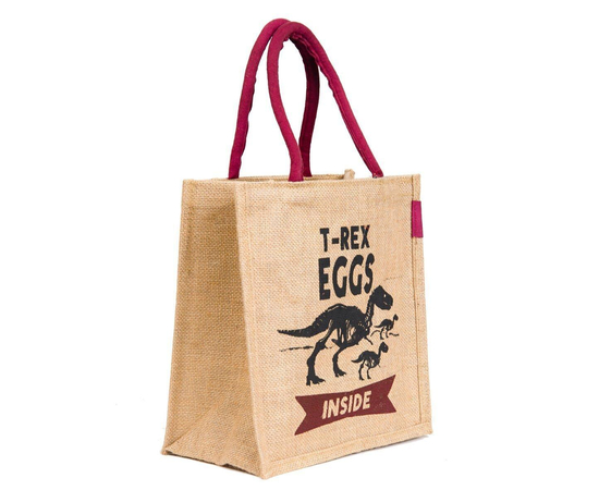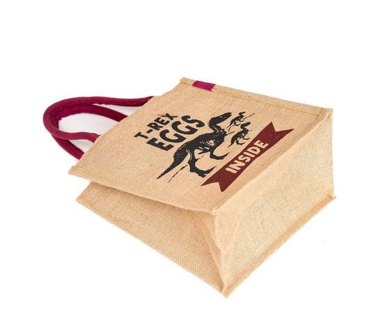 Jute handbag, Handmade Indian Jute Tote Bag, Reusable Carry Bag, tiffin bag, T-Rex Printed bag, Eco-Friendly Tote, Shopper with handle, Waterproof, With Inner Compartments – ZIP, BOTTLE HOLDER, Indian Handicraft