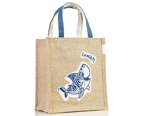 Jute handbag, Handmade Indian Jute Tote Bag, Reusable Carry Bag, tiffin bag, Cute Whale Printed bag, Eco-Friendly Tote, Shopper with handle, Waterproof, With Inner Compartments, Indian Handicraft