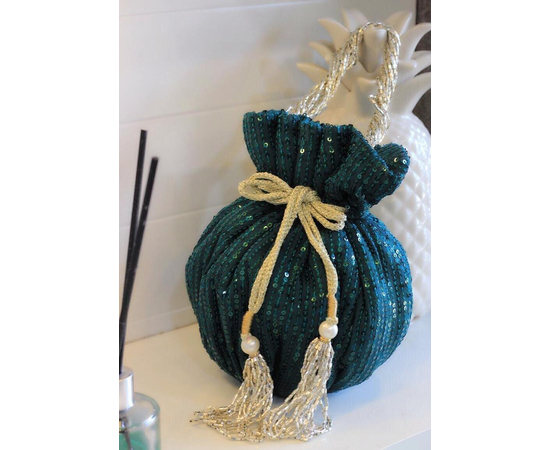 Green tassel potli bag, zardozi, hand embroidery sequin party wedding handbag clutch, beautiful embellish sequin evening bag for woman
