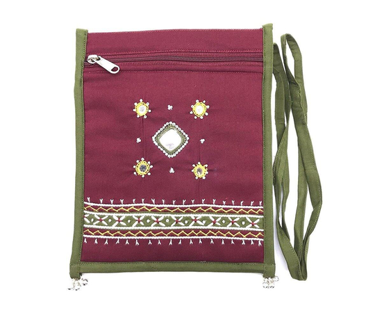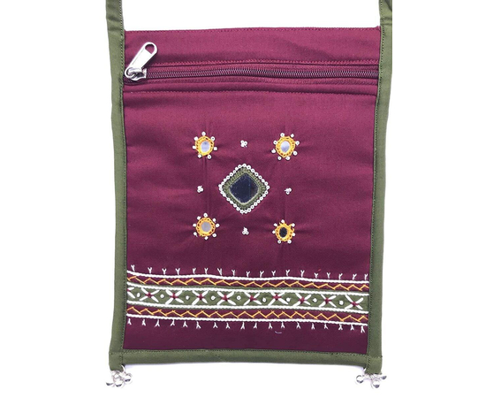 - Eco Friendly Bag | Adjustable strap |Designer 2 Back Zipper 2 inside pockets | Hand Embroidered Work | Original Mirror Applique Work | Finest Craftsmanship | Double Stitched