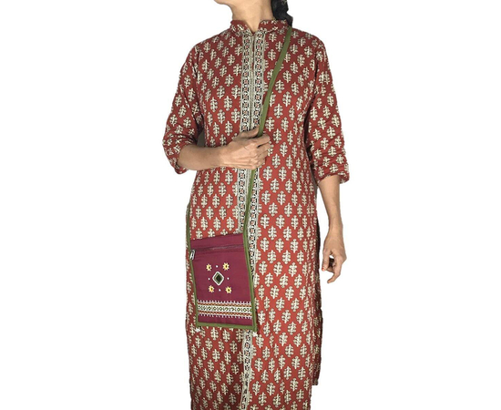 SriShopify Handicrafts Fabric Jaipuri Embroidered/Needle craft Women's Sling Bag/Messenger Bag/ Medium crossbody bag/ Original Mirror Work handmade Shoulder bag