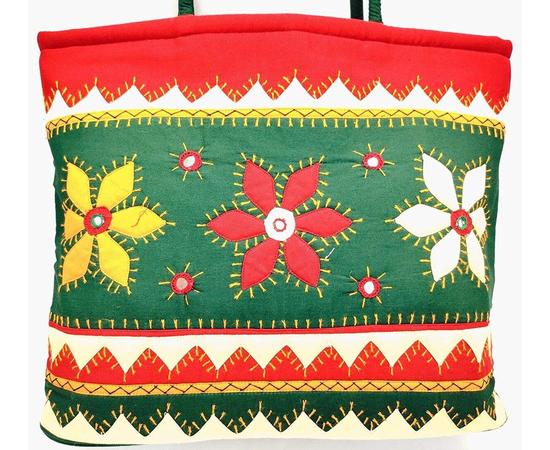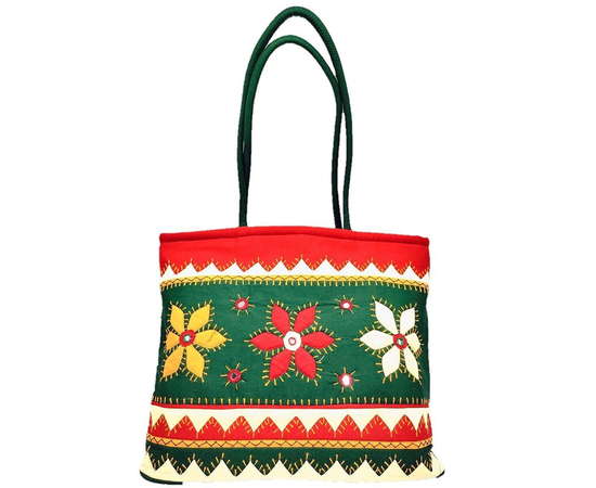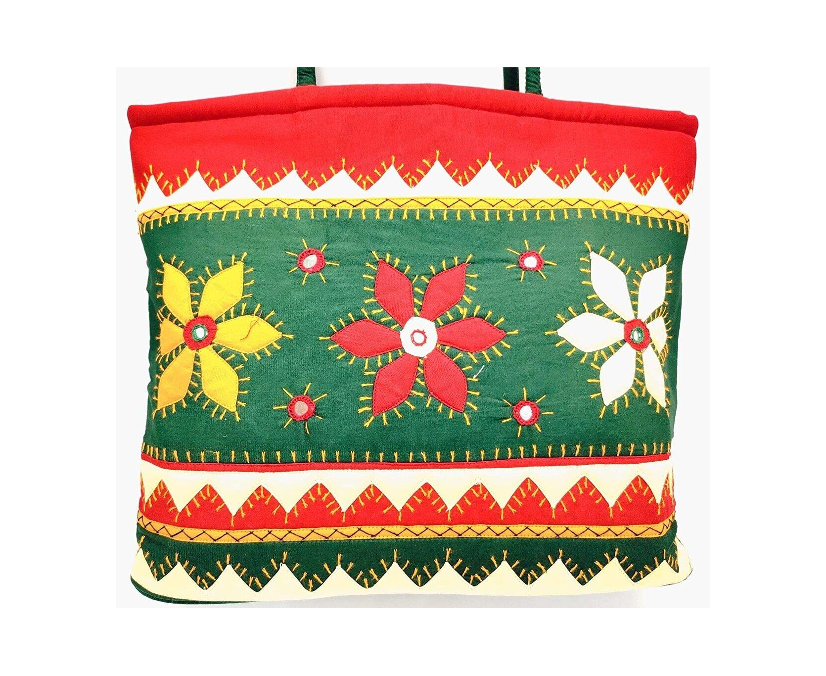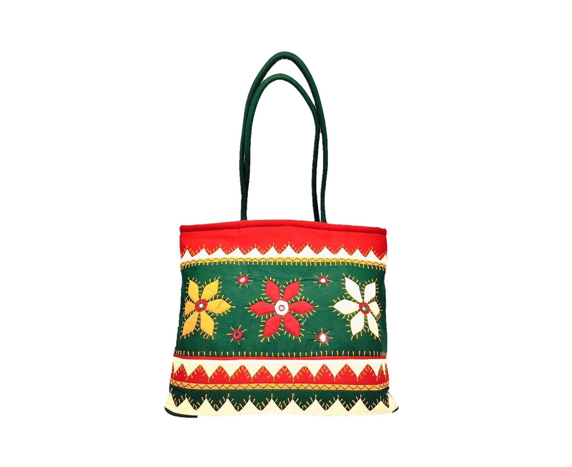Sri Shopify handcrafted shoulder bag | Applique Mirror work embroidered hand bag | Zipper Tote Bag for Grocery & Traveling | ladies shoulder bag | colorful bohemian handbag