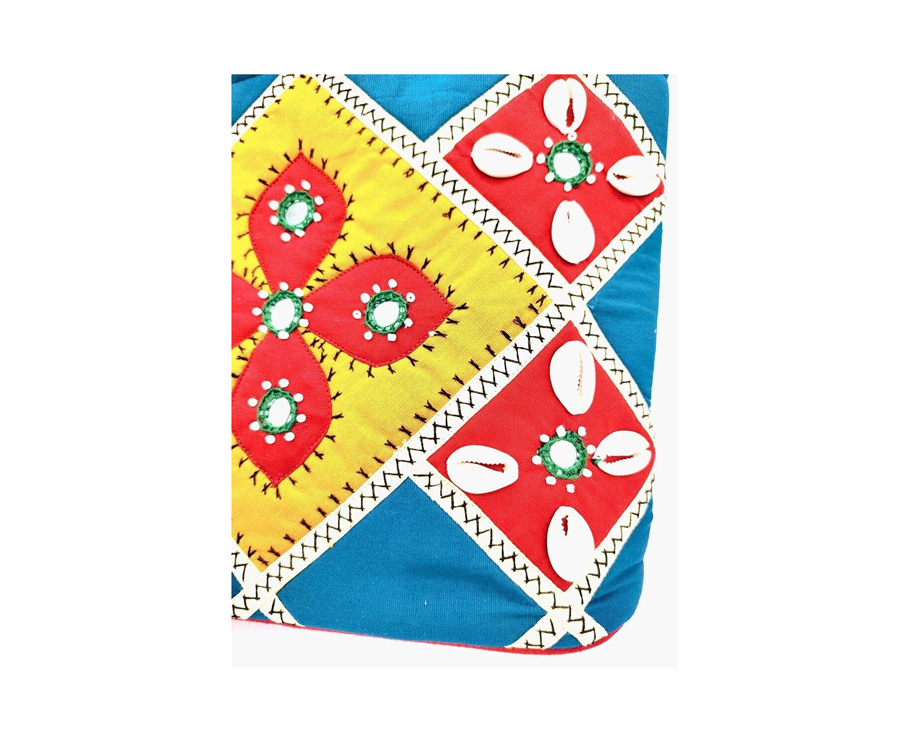 - (Material) A soft high quality Cotton (Poplin Fabric) with heavy duty zipper bag. A Piece of Art, Banjara Embroidery , With tiny Mirrors, Beads , Shells and Colourful Thread work called Traditional Banjara needle craft . When you touch the bag feel smooth, Craft Design on Both side, easy to wear and carry