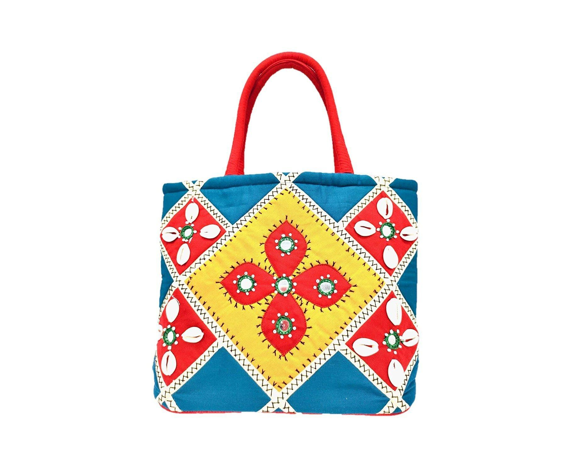 SRISHOPIFY HANDCRAFTED APPLIQUE BAG, VINTAGE BANJARA TOTE BAG, ELEGANT COLORFUL COTTON BOHEMIAN BAG, TRADITIONAL HANDMADE ANTIQUE HAND WORK LADIES PURSE, SHOULDER BAG