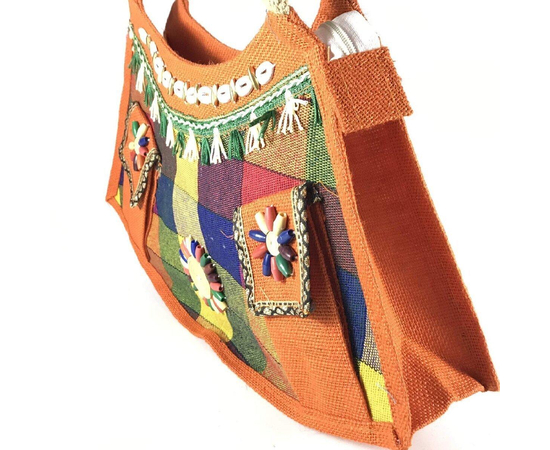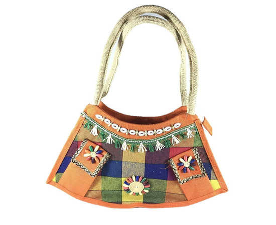 SriShopify Handcrafts Embroidery Eco friendly Women’s Jute Handbag, Tote Bag, (Medium, Orange), luxury feel jute bag, Natural bag Sustainable Shopping Bag