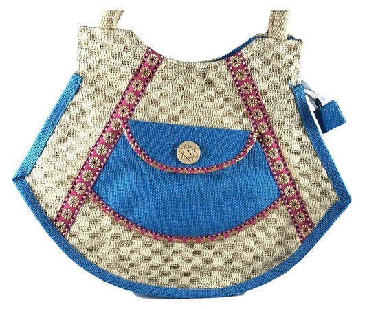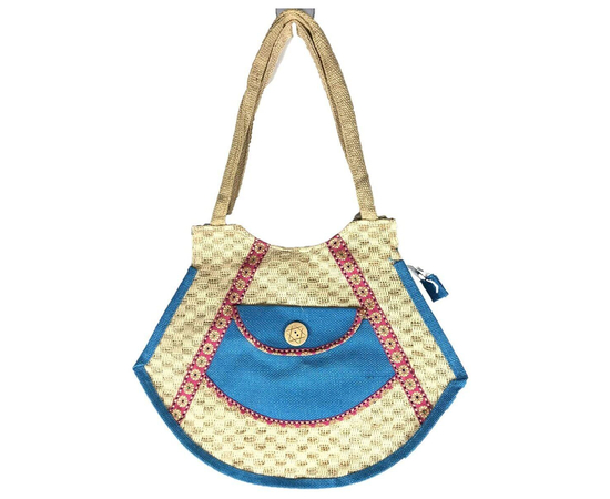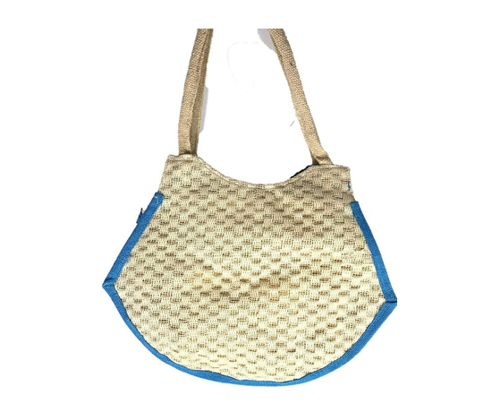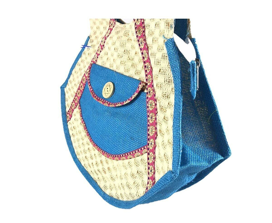SriShopify Handcrafts Embroidered Eco friendly Women’s Jute Handbag, Tote Bag (Medium, Blue), luxury jute bag, Natural bag, Daily use Shopping Bag, premium shoulder bag