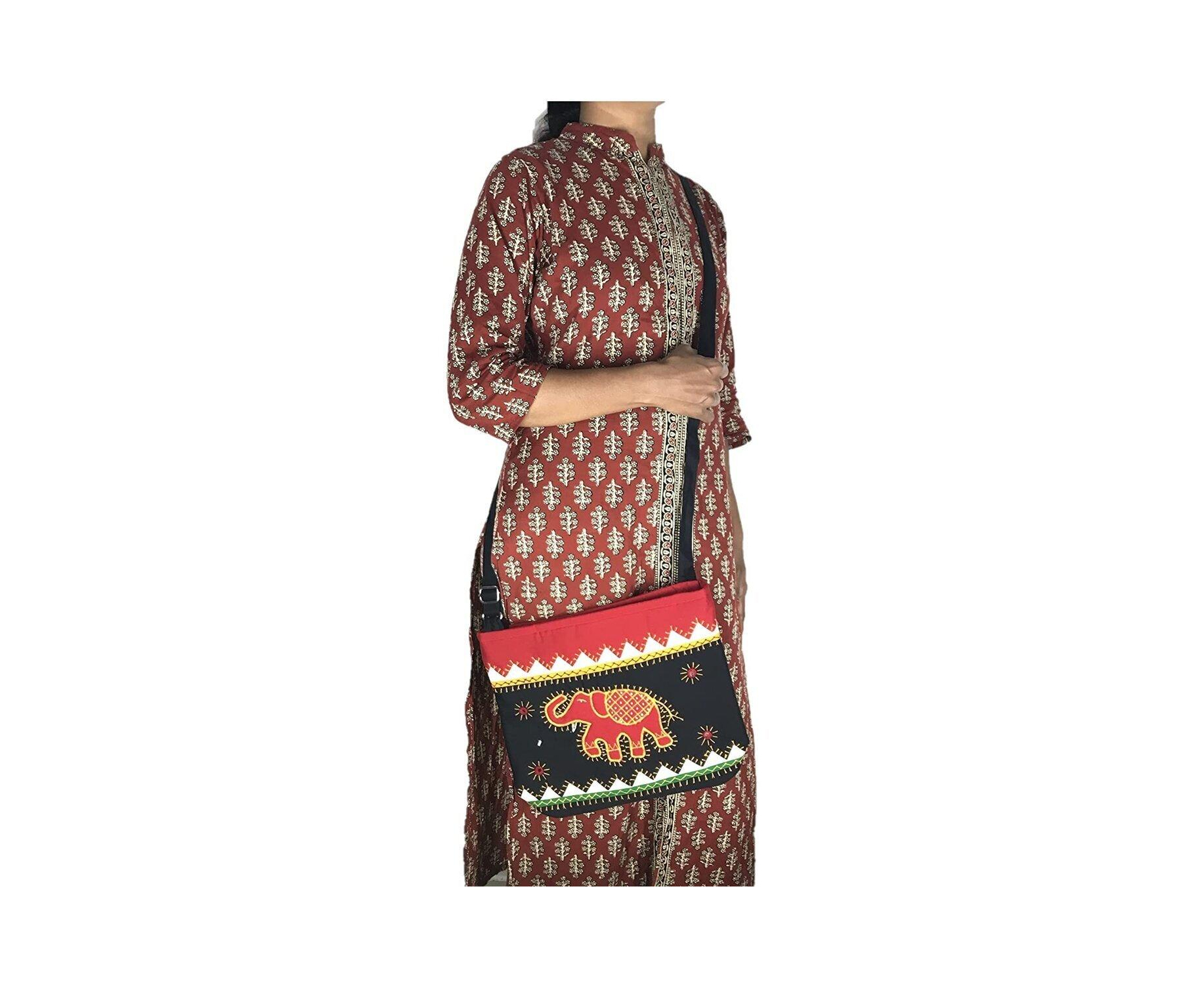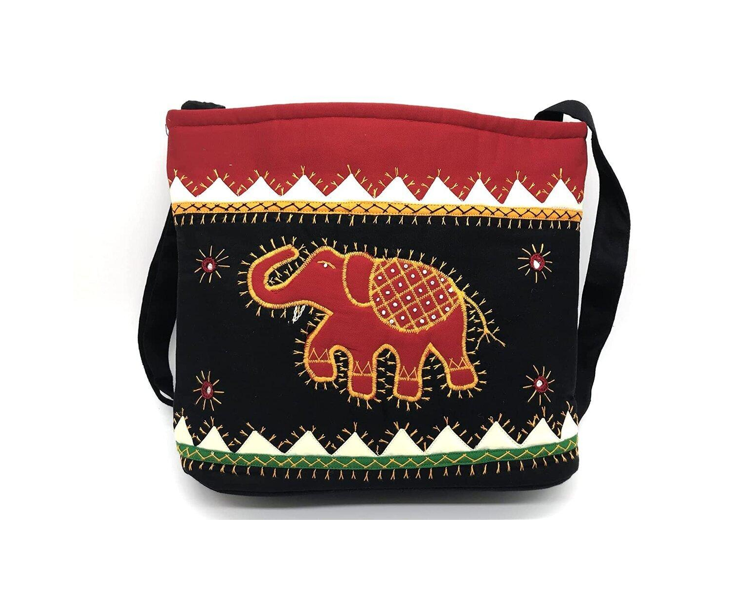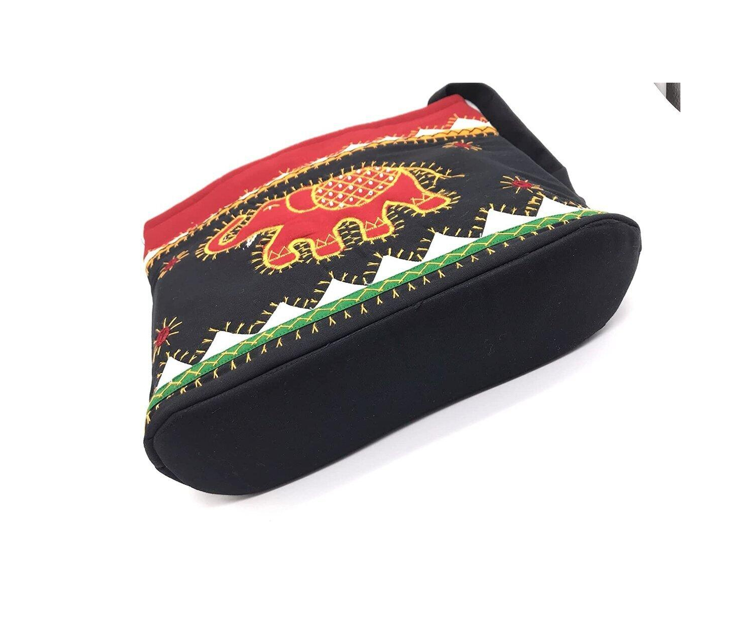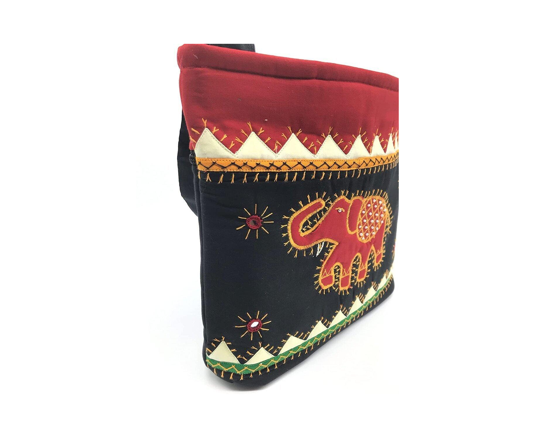 SriShopify Handicrafts Handmade Women's Sling Bag With Adjustable strap, Shoulder bag, fancy Crossbody bag, Applique Work Mirror embroidery (Medium Size 12"x10"x3" Multicolour), Designer handmade bag