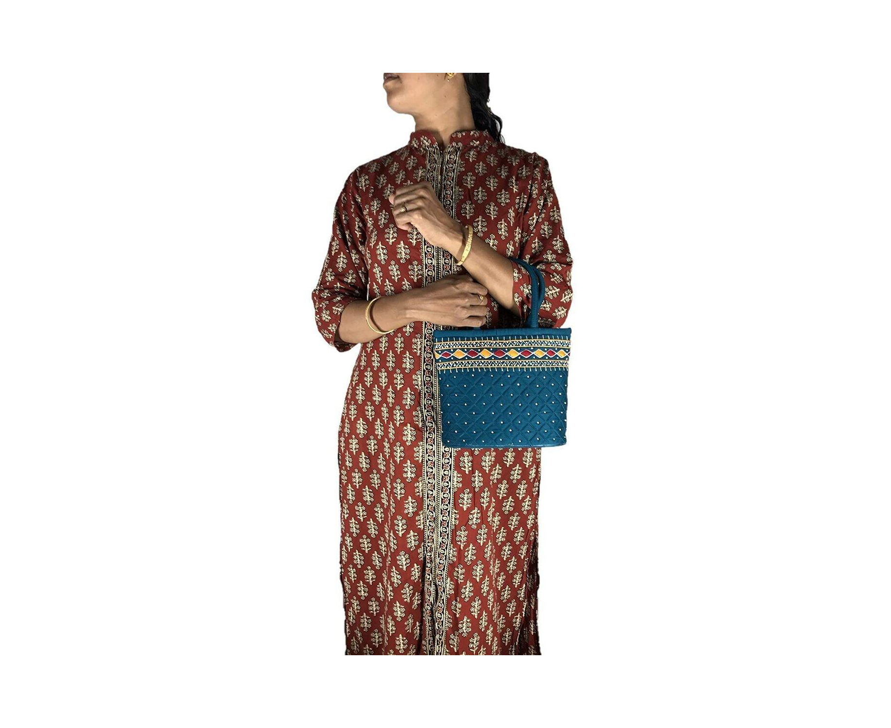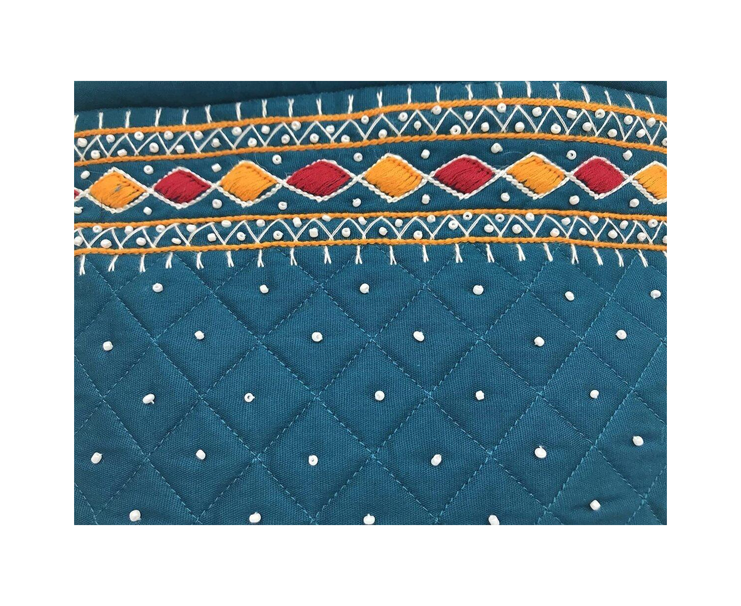 - Eco-friendly Cotton | High Quality Zipper closer | Handmade stitching embroidery | Original Mirror work floral applique | Finest Craftsmanship | Double Stitched