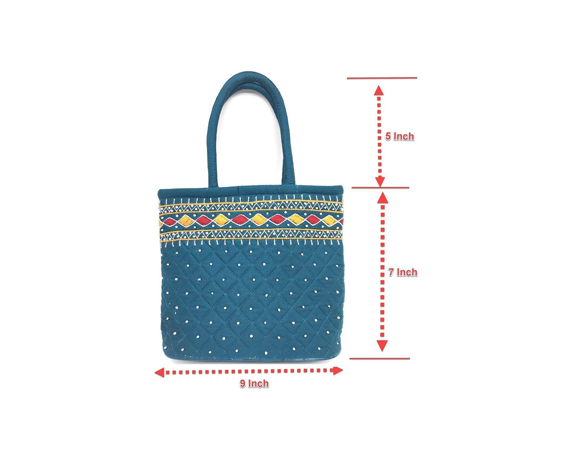 SriShopify Handicrafts Women's Handbag, Banjara Traditional Mini Handle Bag, handmade Hand Purse Cotton 9 x 7 x 3 Inch, original Beads Thread Work, Applique Work tote bag