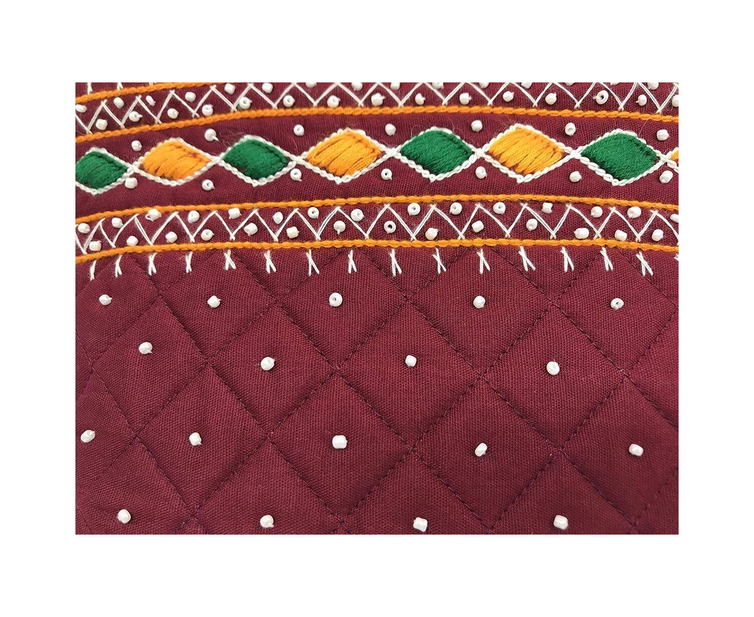 • (Material) A soft high quality Cotton (Poplin Fabric) with heavy duty zipper bag. A Piece of Art, Banjara Embroidery , With tiny Mirrors, Beads , Shells and Colourful Thread work called Traditional Banjara needle craft . When you touch the bag feel smooth, Craft Design on Both side, easy to wear and carry