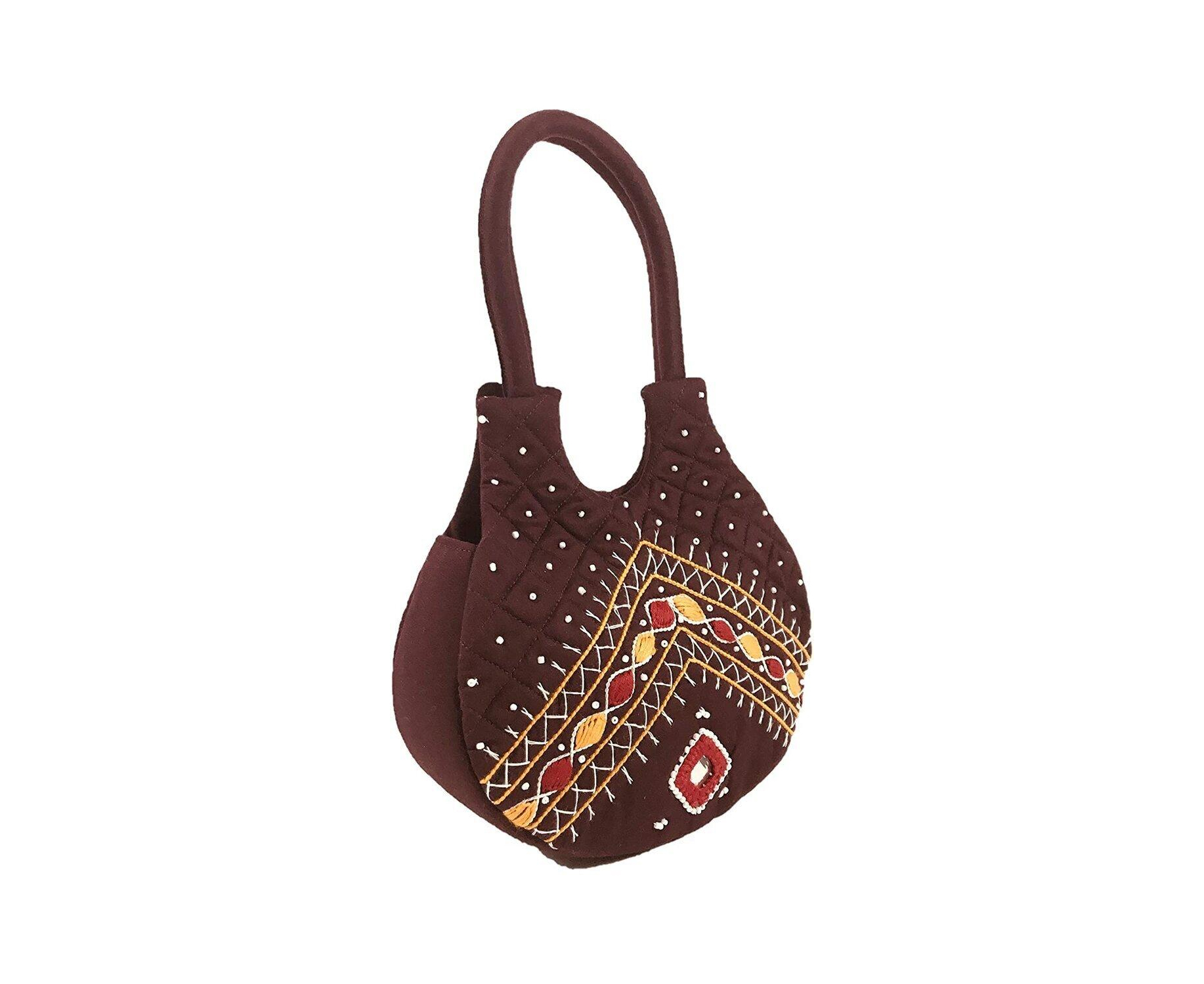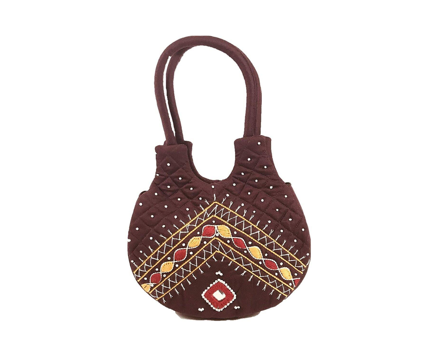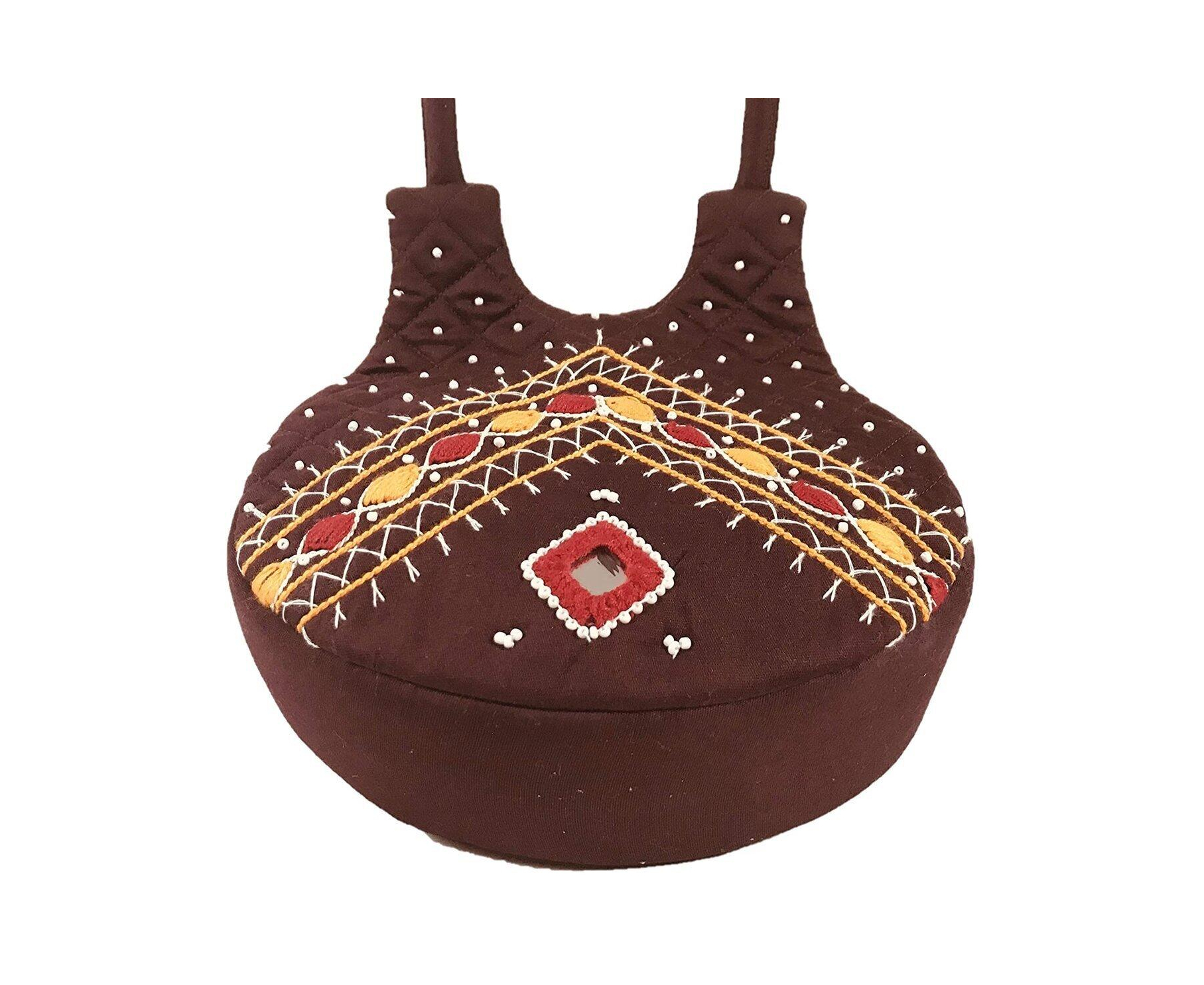 SriShopify Women’s Handbag Banjara Traditional Pot Bag, Hand Purse, Cotton handmade Small Tote, Mirror Beads and Thread Work Handcrafted Pouch for women and girls
