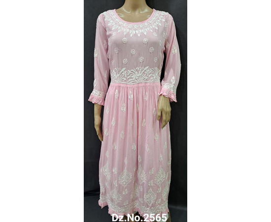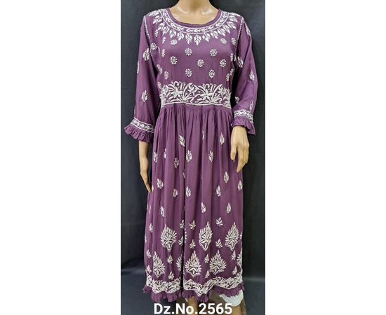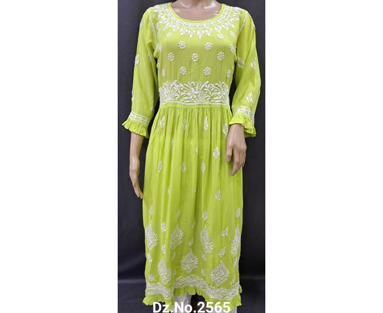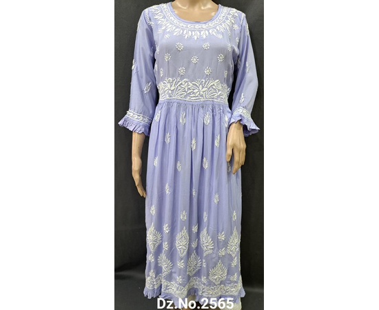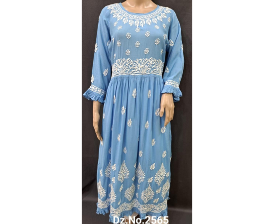 This beautifully crafted kurti gown showcases the traditional art of Chikankari embroidery, which is intricately woven into the fabric of the garment. The soft modal cotton ensures comfort and ease, making it perfect for all-day wear.