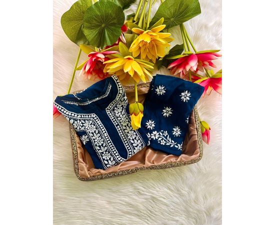 This beautiful kurti palazzo set is adorned with intricate Chikankari embroidery, adding a touch of elegance to your outfit. The comfortable palazzo pants and stylish kurti make it perfect for casual gatherings, parties, or festivals.