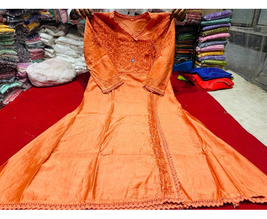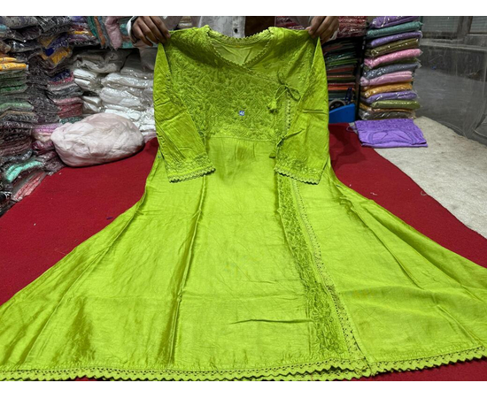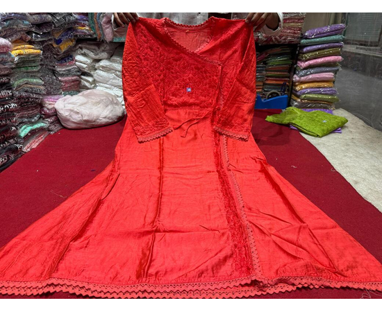 This Chikankari Angrakha Kurta in pure Chanderi Silk fabric brings together heritage embroidery and modern versatility. The dyeable fabric lets you choose your perfect shade, making it an excellent option for personalized festive or bridal wear. The intricate handwork and flattering cut create a graceful, luxurious look.
