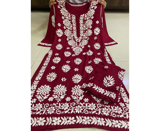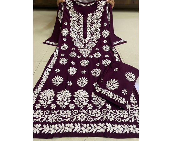 Package Contents: 1 Chikan Embroidered Kurta & Palazzo