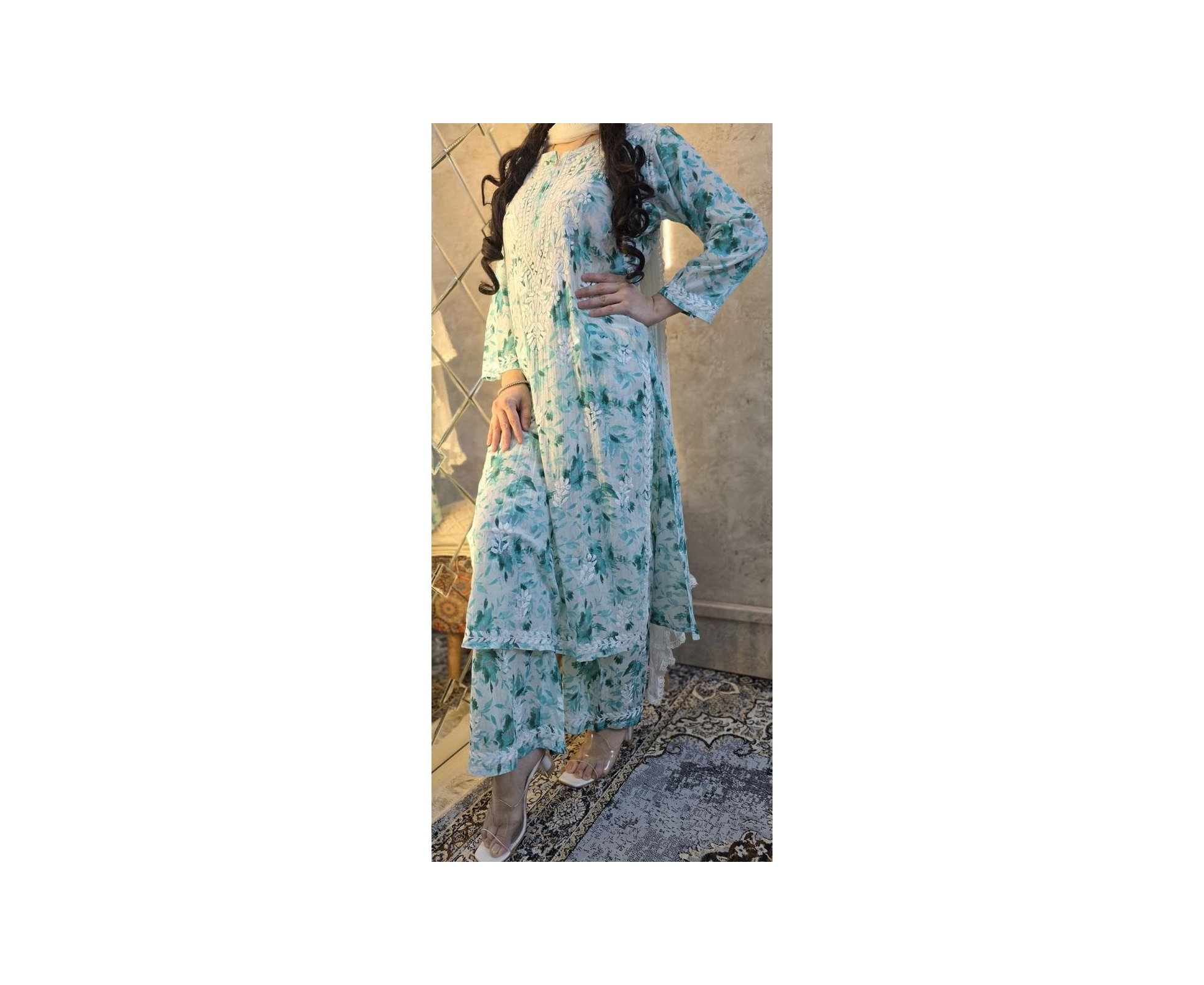 1. Our Chikankari Kurta Palazzo Set is a masterpiece of traditional craftsmanship, featuring intricate embroidery on soft mulmul cotton. This elegant set is perfect for everyday wear, formal occasions, or festive celebrations.