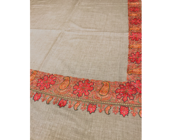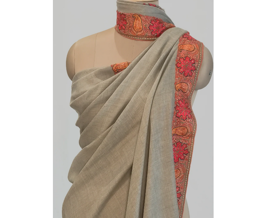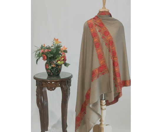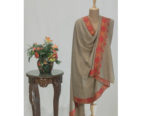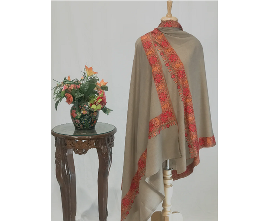 Dark Natural Handmade Pashmina Shawl | Papier Mache Border Design with Golden & Silver Embroidery - Soft, Lightweight, and Elegant