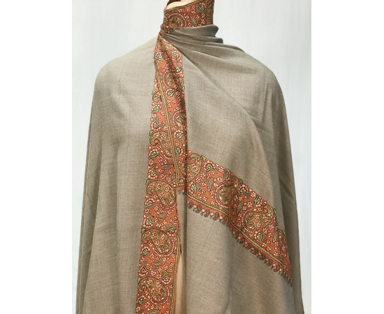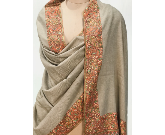 Handmade Pashmina Shawl, Kani Kasmiri shawl, Beige Pure Pashmina Shawl With Intricate Sozni hand Embroidery Pashmina Shawl