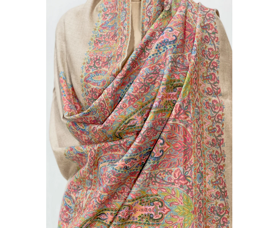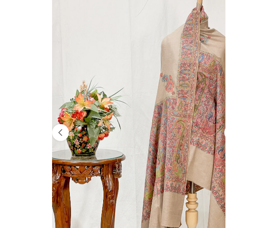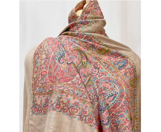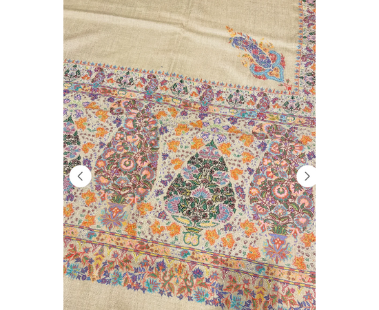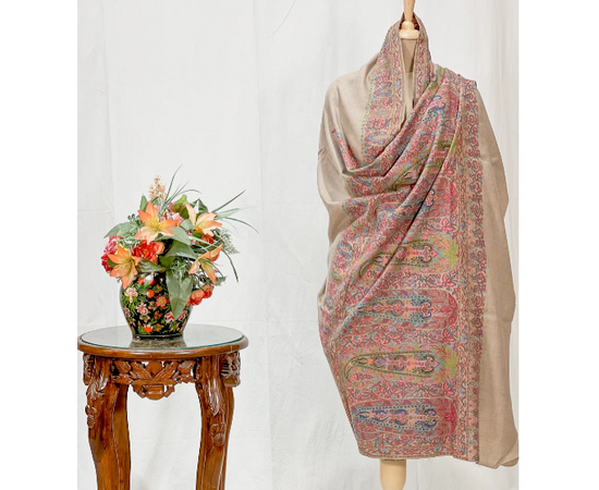 Handmade Pashmina shawl, Kashmiri shawls, Women's Shawls with Floral, Embroidered Designs, Light Natural Pure Pashmina Shawl
