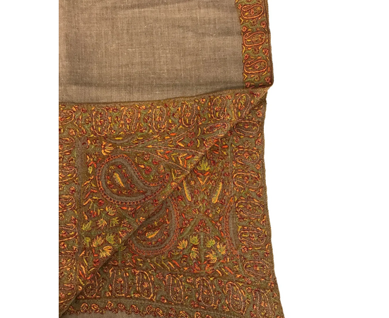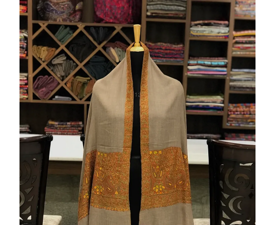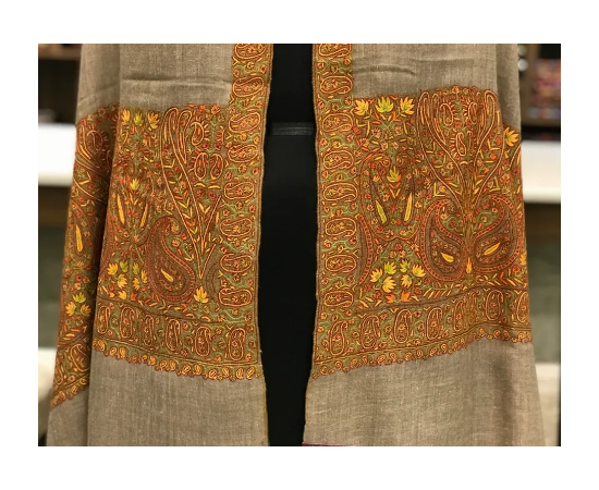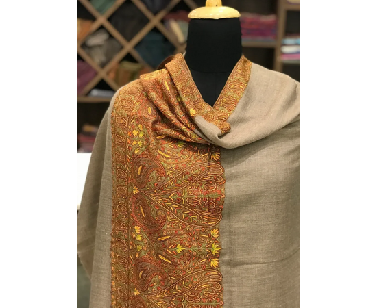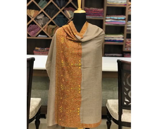 Pashmina Shawl Traditional Hand spun & Hand-woven Raw Wool Shawl, has beautiful colors. Dimensions: - 40″ X 80″ (100 cm X 200 cm) approx. These shawls are very warm with excellent pashmina fiber and beautiful designs adorned with adorable pashmina colors. Shawls are very very elegant and are made from the finest counts of Pashmina Fiber. Handmade Pashmina Women's Shawls, Embroidered Designs, Put on the garment of Praise. We are giving out a versatile piece of art enhancing alluring Sozni embroidery. This Natural Beige Pure Pashmina Shawl with Sozni Hand-Embroidery will embrace your beauty, as Kashmiri shawls are highly praised for their Fine Pashmina Wool, skilled weaving, and embroidery by master artisans of Kashmir.