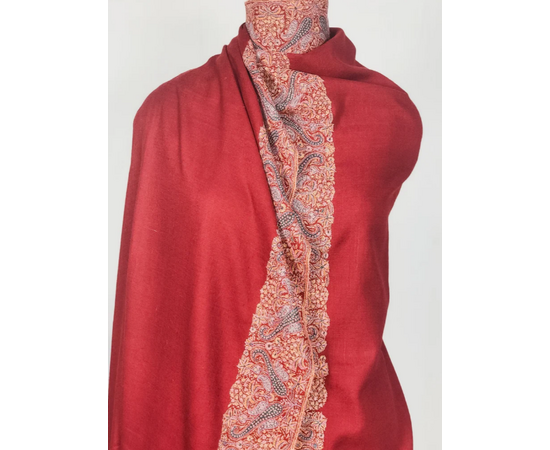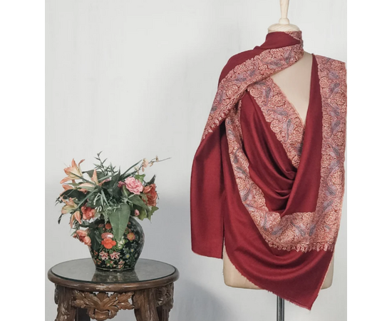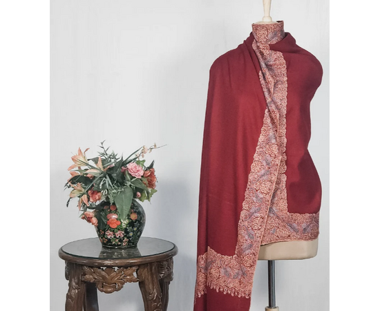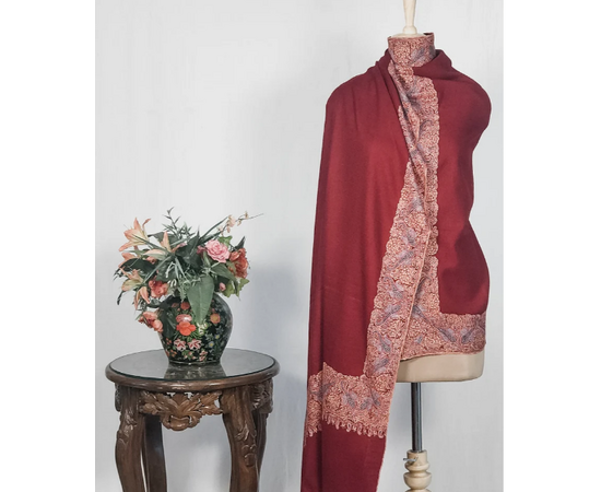 Handmade Pashmina shawl, Women's Shawls with Embroidered Designs,Maroon Pure Pashmina Shawl With Sozni hand Embroidery shawl