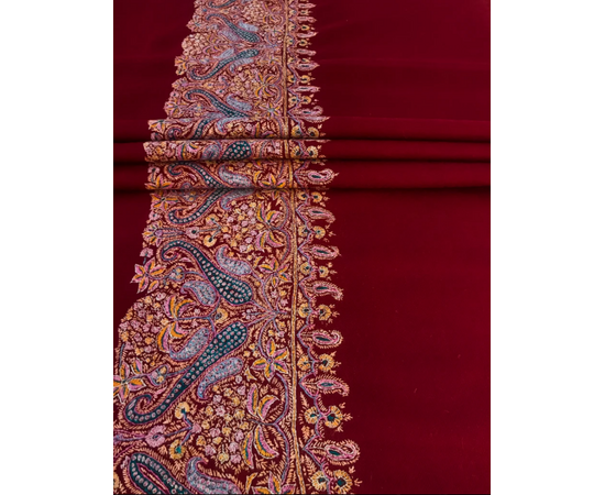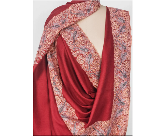 Handmade Pashmina Shawl, Royal Maroon Pure Pashmina Shawl With Tilla Hand Embroidery Kashmiri shawls, Hand-woven Dream | Traditional Hand spun & Hand-woven Raw Wool Shawl, beautiful color. Dimensions: -40″ X 80″ (101.6 cm X 203.2 cm) approx Fall in love with the discrete, flawless aesthetics of the Pashmina shawl Hand Embroidery that stands the test of time. and embroidery by master artisans of Kashmir. Put on the garment of Praise. We are giving out a versatile piece of art enhancing alluring Sozni embroidery. This Maroon Pure Pashmina Shawl With Sozni hand Embroidery will embrace your beauty in every way, as Kashmiri shawls are highly praised for their Fine Pashmina Wool, skilled weaving, and embroidery by master artisans of Kashmir.