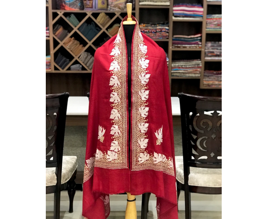 The Hand-woven Dream | Traditional Hand spun & Hand-woven Raw Wool Shawl, beautiful colors. Dimensions: - 40″ X 80″ (101.6 cm X 203.2 cm) approx. These shawls are very warm with excellent pashmina fiber and beautiful designs adorned with adorable pashmina colors. Shawls are very very elegant and are made from the finest counts of Pashmina Fiber. Handmade Pashmina Women's Shawls, Embroidered Designs, Handmade Embroidered Unique Designs For Handmade Pashmina shawl embroidery is one of the most celebrated Kashmiri handicrafts. The principal aspect of a shawl is its distinctive Kashmiri weaving technique and fine wool. Pashmina shawls are the most Luxurious, softer, and warmer than superfine wool. This Pure Pashmina Shawl With Tilla Embroidery will keep you emphasized on any occasion or gathering.