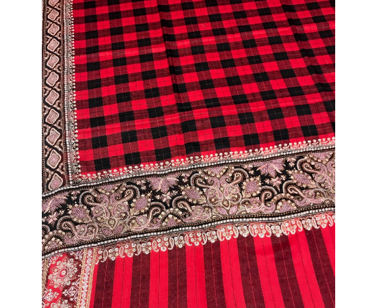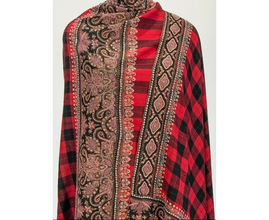 Handmade Women's Shawls, Red Checked Pure Pashmina Shawl | Handmade Emboidered Unique Design For Winter Wear And Women Shawls | Designer Shawl |