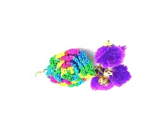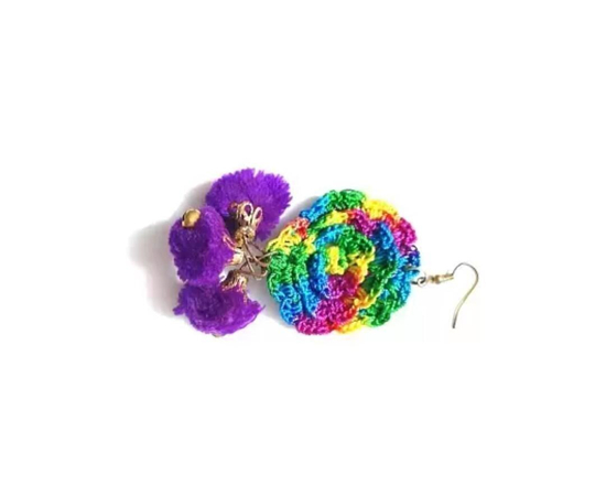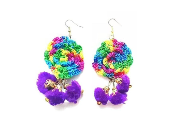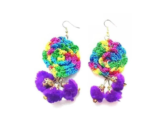 Pompom Earrings, Statement Earrings, Handmade Colorful Earrings, Boho Earrings Hippie, Crochet Earrings, Dangle Drop Flower Crochet Earrings