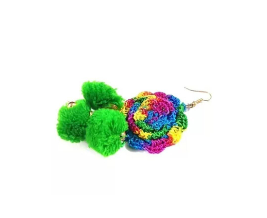 HANDMADE DISC CROCHET EARRINGS/BOHO HANDMADE CROCHET DANGLE DROP EARRINGS/CROCHET EARRINGS WITH POMPOM/COTTON CROCHET EARRINGS