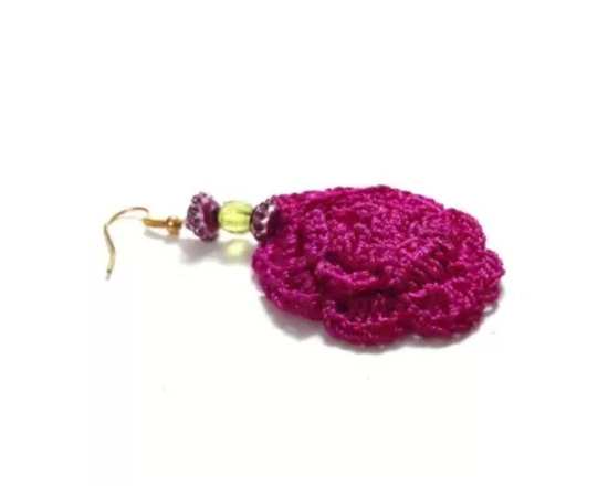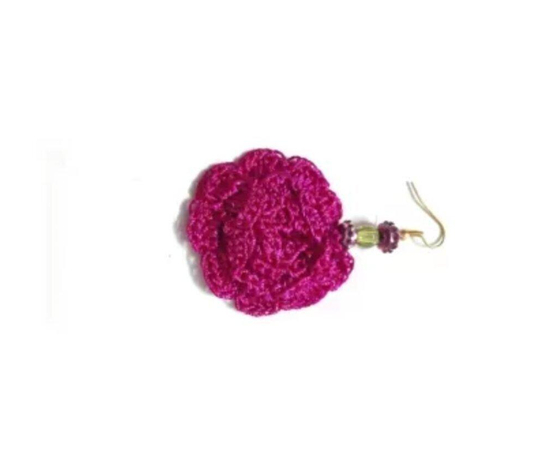 HANDMADE DISC CROCHET DARK PINK EARRINGS/BOHO HANDMADE CROCHET DANGLE DROP EARRINGS/HANDMADE JEWELRY/GIFT EARRINGS/COTTON CROCHET EARRINGS
