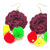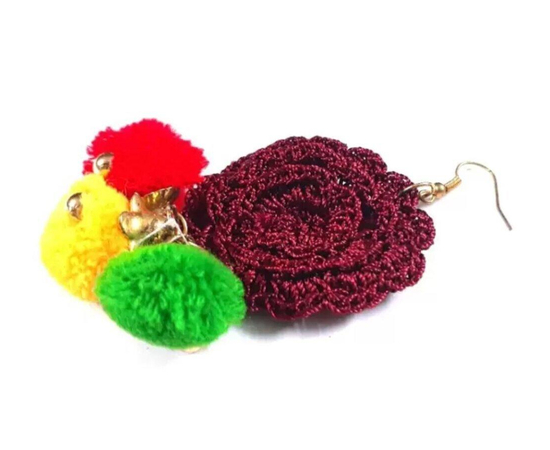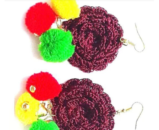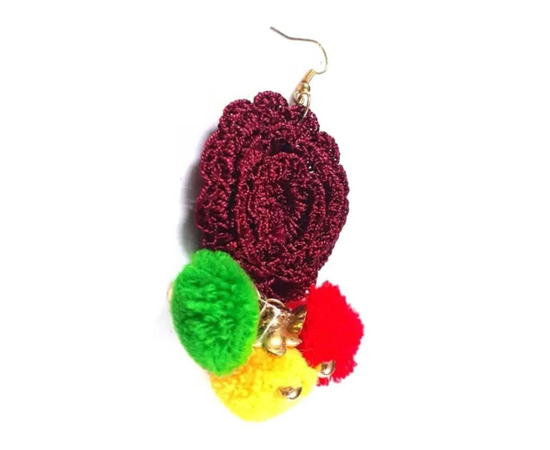 Pompom Earrings, Statement Earrings, Colorful Earrings, Boho Earrings Hippie, Handmade Crochet Earrings, Dangle Drop Flower Crochet Earrings
