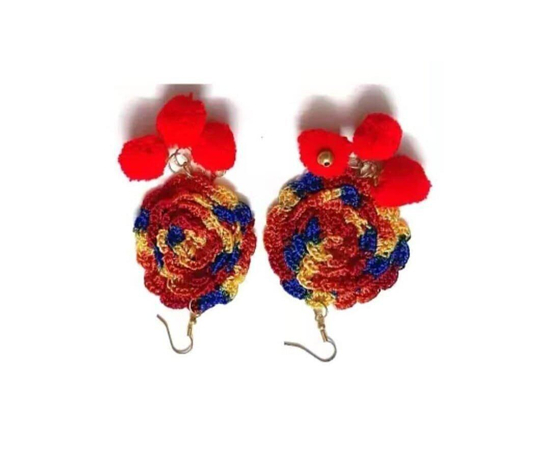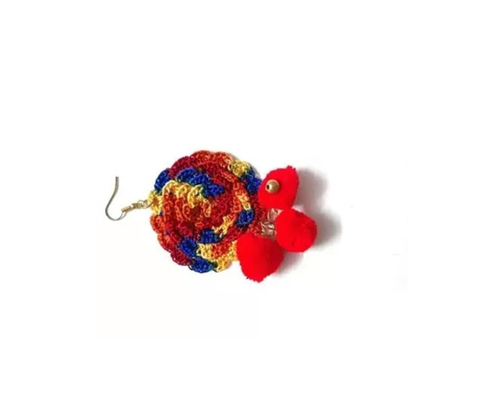Handmade Pompom Earrings, Statement Earrings, Colorful Earrings, Boho Earrings Hippie, Crochet Earrings, Dangle Drop Flower Crochet Earrings