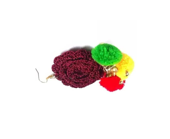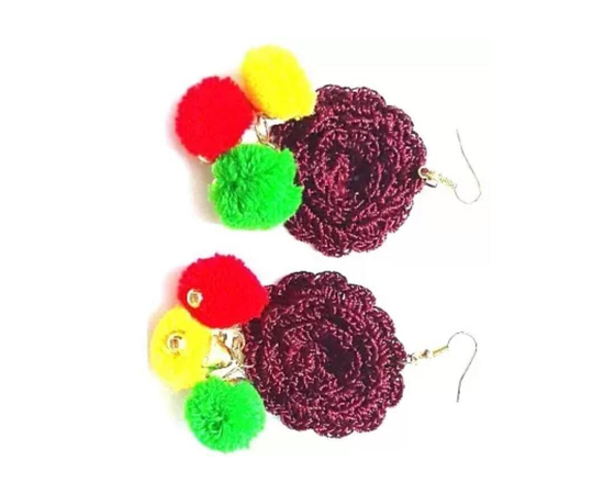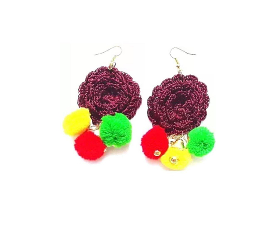 Pompom Earrings, Statement Earrings, Handmade Colorful Earrings, Boho Earrings Hippie, Crochet Earrings, Dangle Drop Flower Crochet Earrings