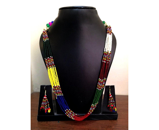 This necklace is an exquisite piece of jewelry which cannot go unnoticed from fashion jewelry lovers. this unique piece is made of multiple layers of different color beads, each one is reflecting a beauty of its own. This necklace comes along with matching pair of earrings. This exclusively gorgeous necklace will surely make you a center of attraction at any occasion. This stunning and funky piece of jewelry is your one stop destination for making any given day an occasion. We understand that your jewels are more than just accessories .They are an extension of your personality. This necklace is not only beautiful in its look but also sturdy in nature as it is made by our talented and dedicated craftsmen. Order online with 100% satisfaction guaranteed. Perfect wear for any occasions.
