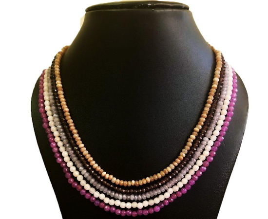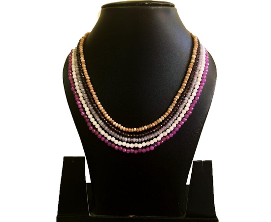 FIVE LAYER ORANGE GREY PINK WHITE AND BROWN CLOUR NECKLACE
