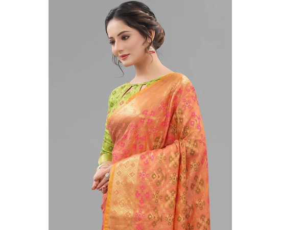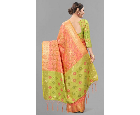 Giving a super grand look, this very unique pattola handloom silk with gold zari pallu and and rich pallu when pair with a clutch and a pair of fashion sandals or any casual footwear of your choice for a casual look when dressing up for a party. Draped in a saree, take confident strides, ahead of the rest! You can also pair it with a pair of earrings and bangles when adorning this outfit for a festive occasion.