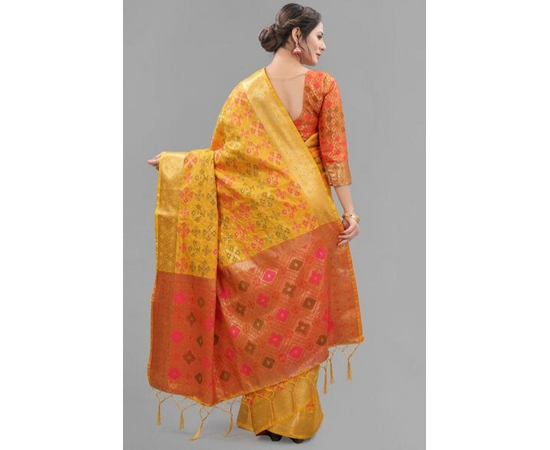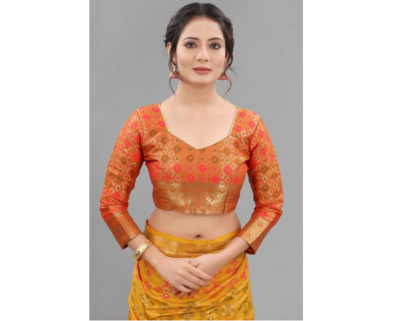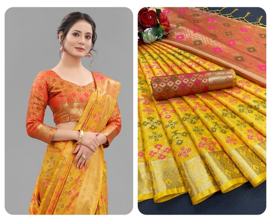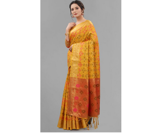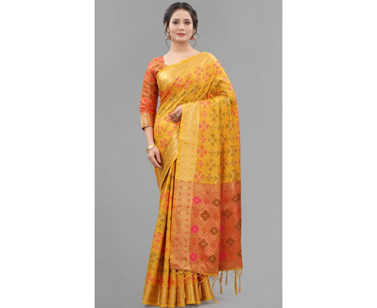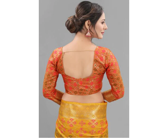 Giving a super grand look, this very unique pattola handloom silk with gold zari pallu and and rich pallu when pair with a clutch and a pair of fashion sandals or any casual footwear of your choice for a casual look when dressing up for a party. Draped in a saree, take confident strides, ahead of the rest! You can also pair it with a pair of earrings and bangles when adorning this outfit for a festive occasion.