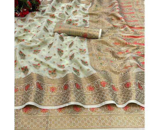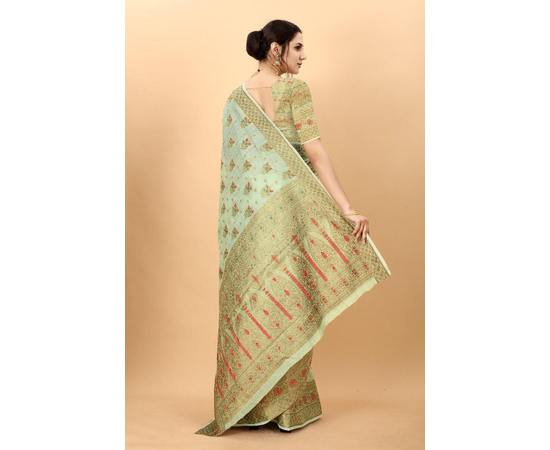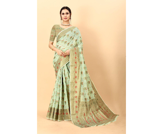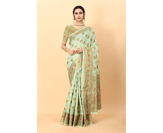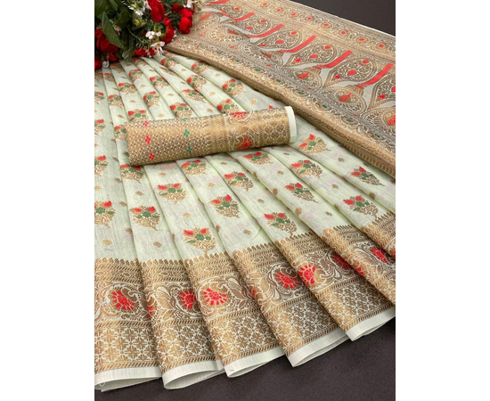 Soft Cotton Silk with meena weaving work, saree and blouse for women, Indian saree, wedding saree, saree dress, designer saree, green saree, jacquard Stylish Golden - Zari Saree, Bridal Festival Sari