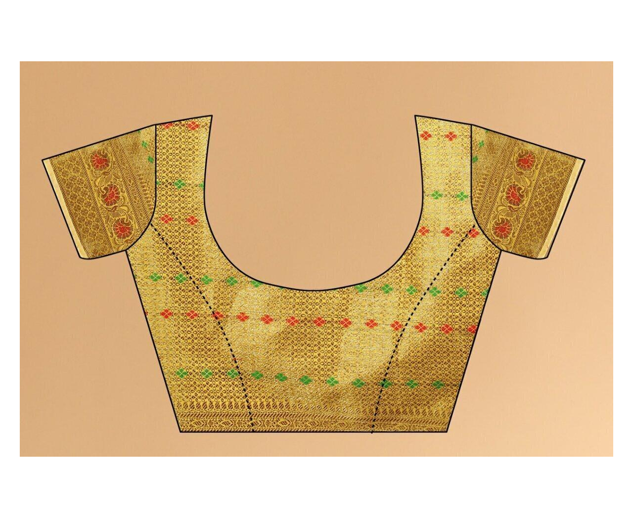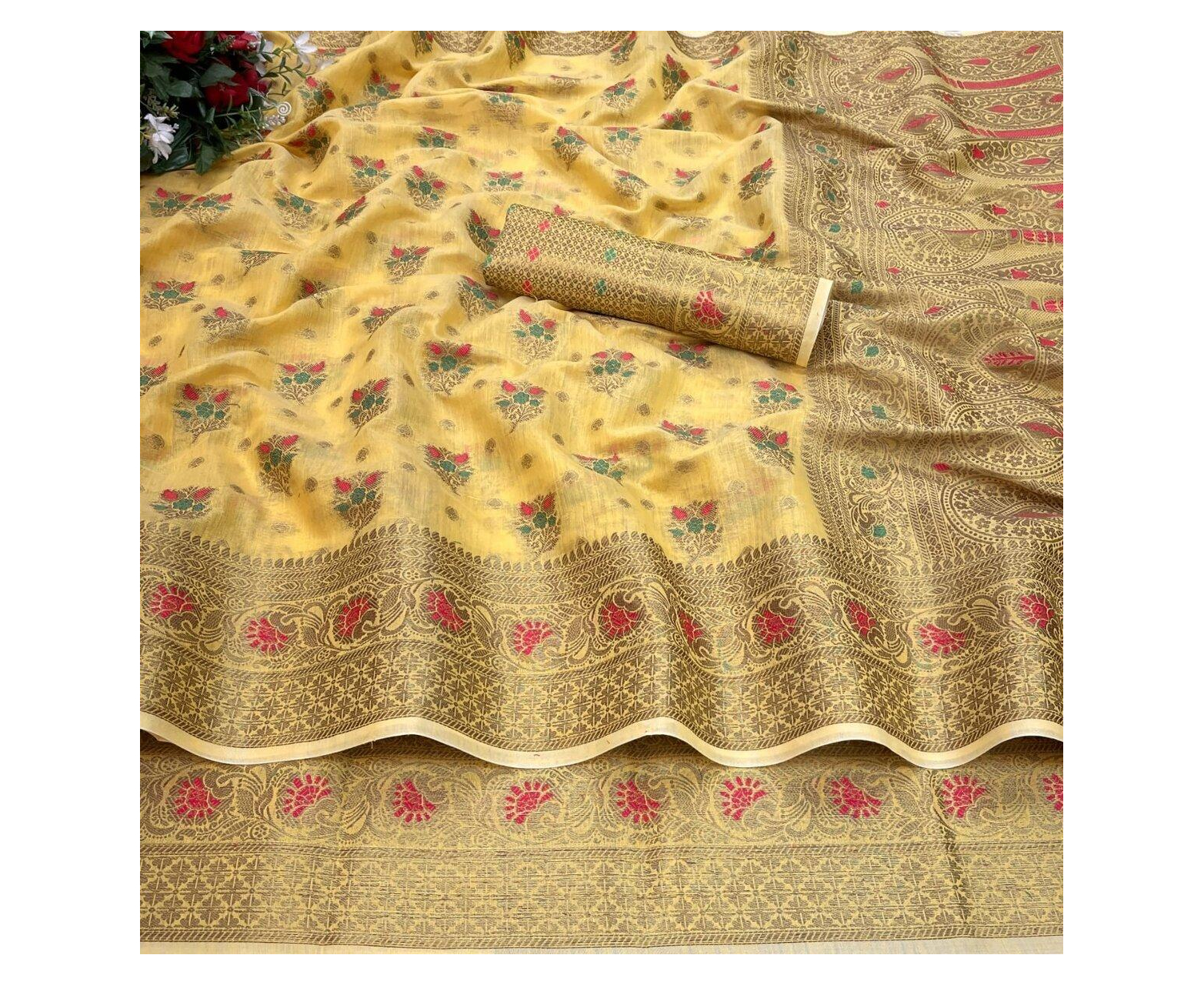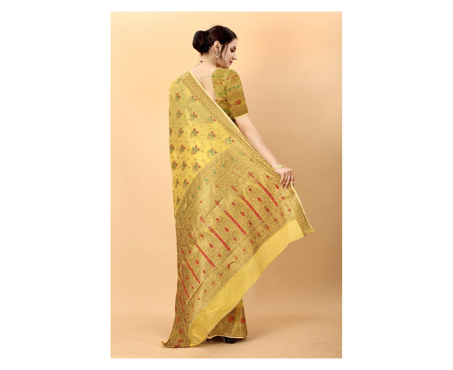 Soft Cotton Silk with meena weaving work saree and blouse for women, Indian saree, wedding saree, saree dress, designer saree, yellow sari, jacquard Stylish Golden - Zari Saree, Bridal Festival Sari