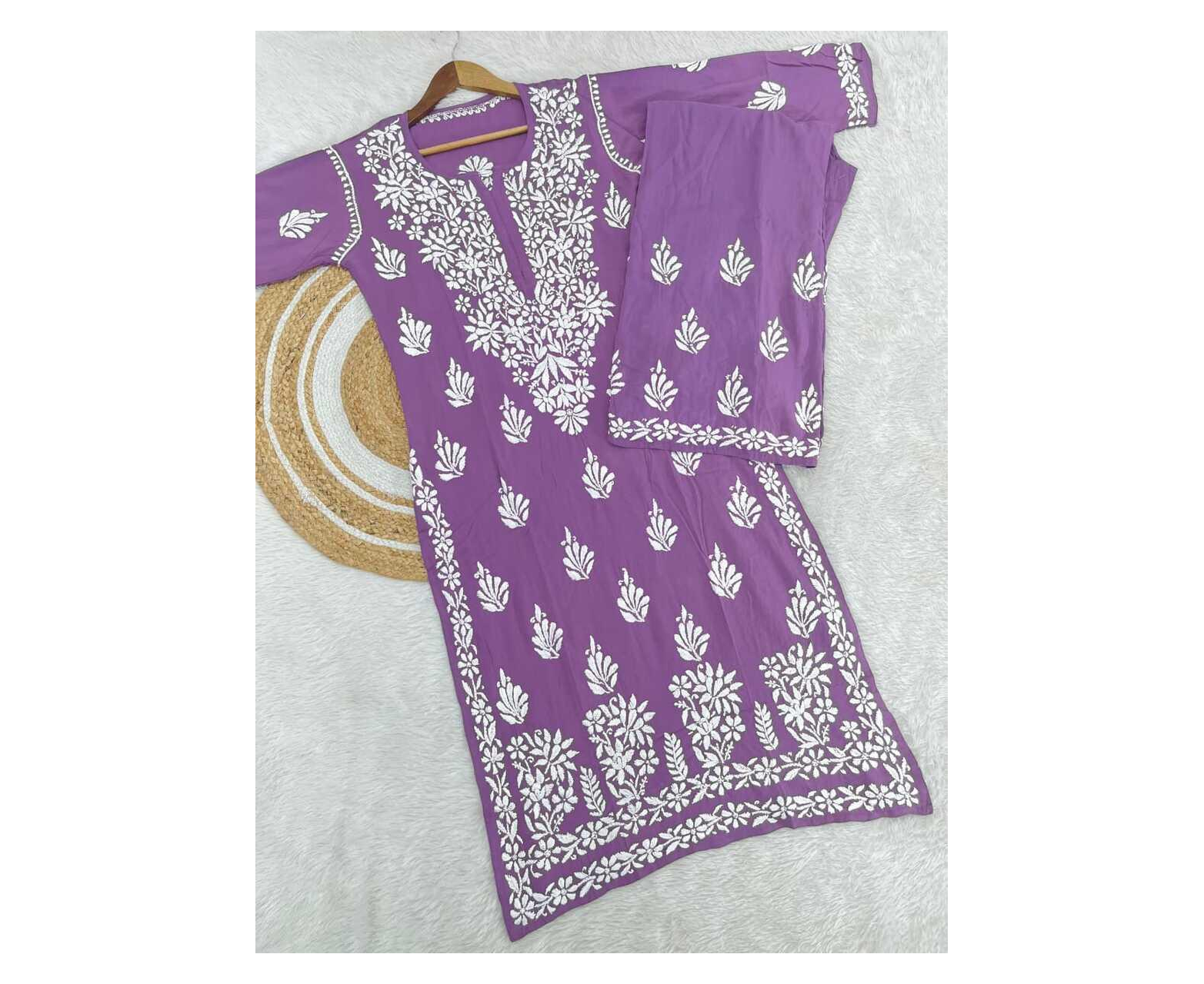 Package Contents: 1 Chikan Embroidered  Kurta with Palazzo