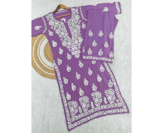 This beautiful kurti palazzo set is adorned with intricate Chikankari embroidery, adding a touch of elegance to your outfit. The comfortable palazzo pants and stylish kurti make it perfect for casual gatherings, parties, or festivals.