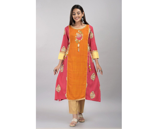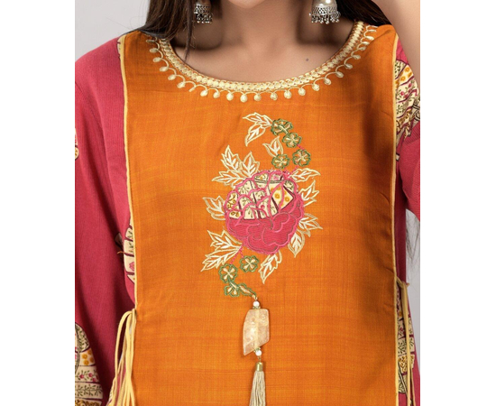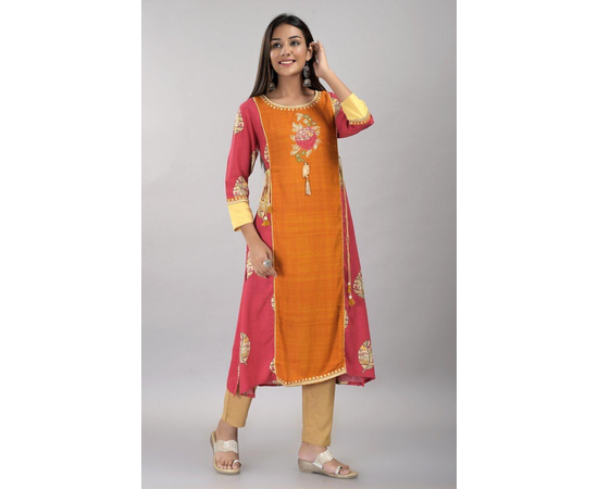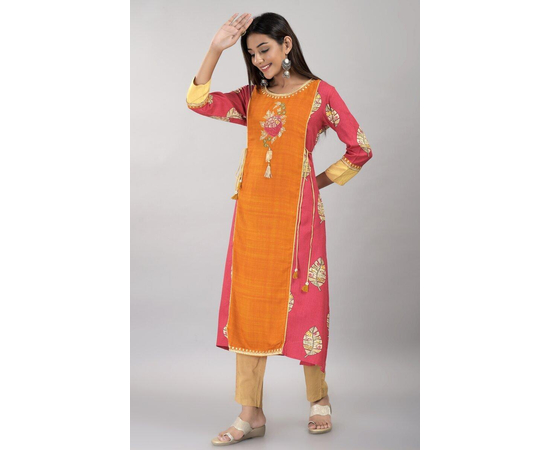 Women's New Fashionable Designer Bollywood Style Party Wear Kurta, Indian Ethnic Kurta, Trendy Kurti, Pink and Orange embroidered kurta