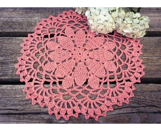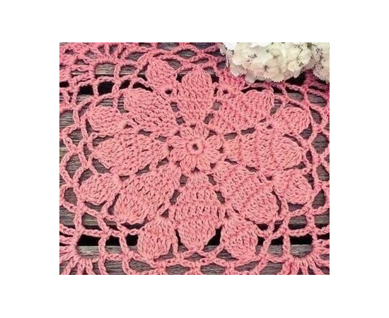 Handmade crocheted doily from high quality cotton yarn in pink color. This product is hand knitted by the rural women artisan of Narsapur Lace cluster, Andhra Pradesh, India.