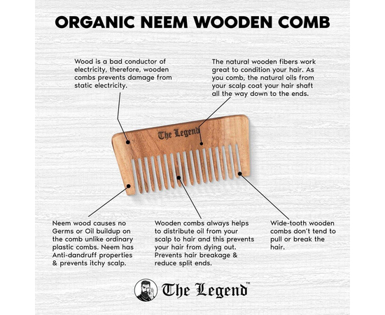 Handcrafted from Neem Wood. Neem is a wonder plant, recognized for its medicinal properties Package Includes: 1 Neem Comb: Color: Brown The Legend brand guarantees GENUINE Neem Wood Fine toothed - suitable for styling - Non static 100% natural - Ecofriendly and Hair friendly