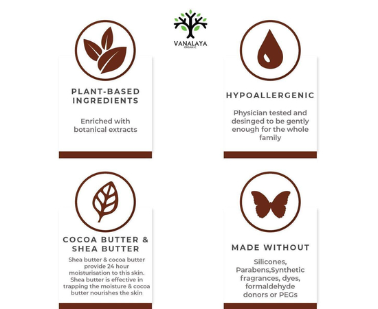 - ENRICHED WITH SHEA BUTTER & COCOA BUTTER: Shea butter is an excellent natural moisturizer and has high oil content and fatty acids that deeply penetrate the skin and cause skin cell regeneration. Cocoa butter is often used to hydrate various areas of the body due to its high lipid content. It’s loaded with vitamins and antioxidants and is safe in most sensitive skin types