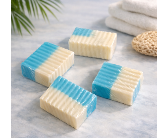 Castile possesses the property of making the skin fluffy it is well soused with the mild fragrance of aqua. The crinkled surface of the soap is a good massager and the two layers infused with aqua gives you the feel of an ocean side.