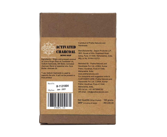 PRATHA Handmade Soap – Activated charcoal, Natural and Cold Process Bath Soap | a perfect detox soap - 100 gm | Anti Bacterial Soap for all types of skin