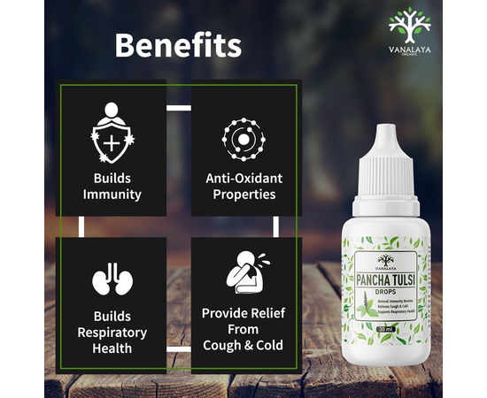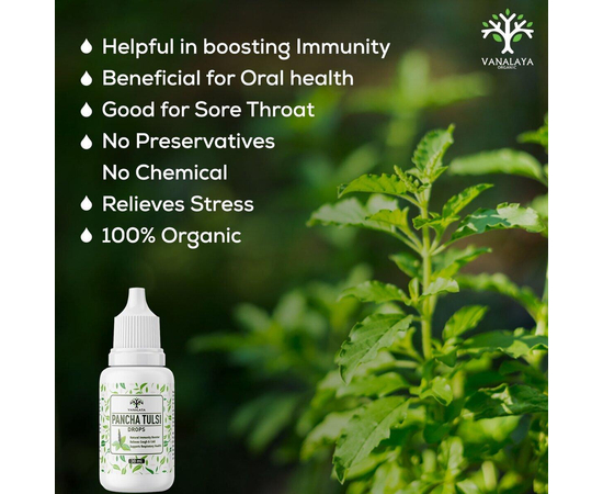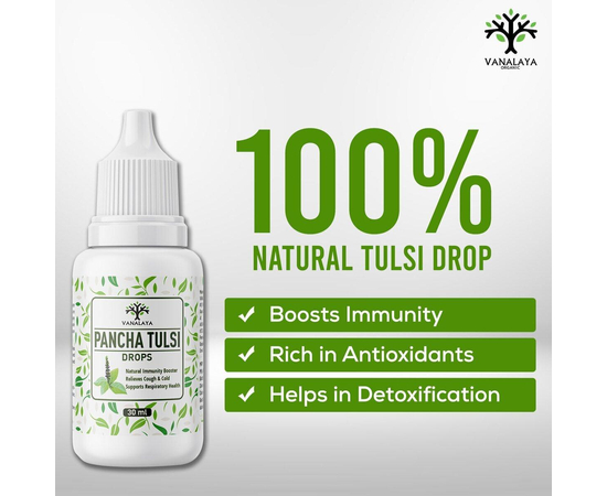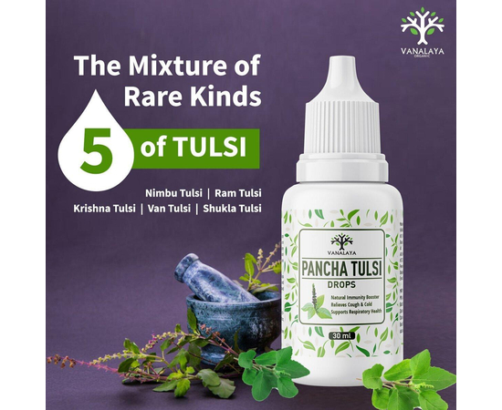 Vanalaya Pancha Tulsi Drops Sustainably harvested, ethically sourced - Natural Immunity booster - relieves cough & cold - Improves Respiratory health (30 ml)