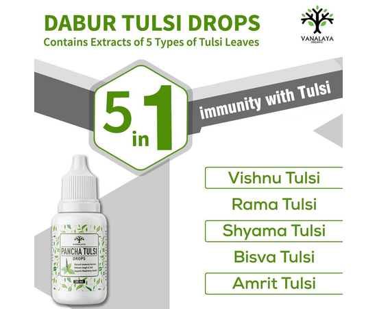 Pancha Tulsi Drop is a liquid extract of five types of tulsi which has immunity booster properties and helpful in all types of allergies. Tulsi also has anti-viral properties and improves metabolism.